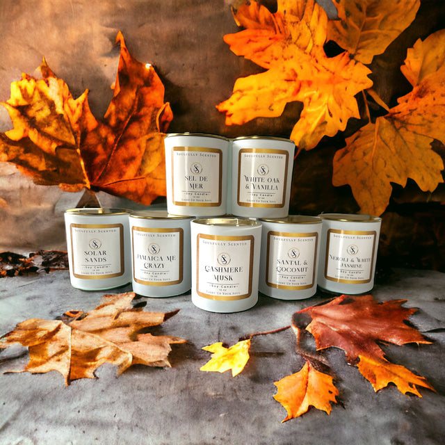 The arrival of fall is imminent, elevate your senses with our exquisite autumn scented candles featuring enchanting cozy fragrances